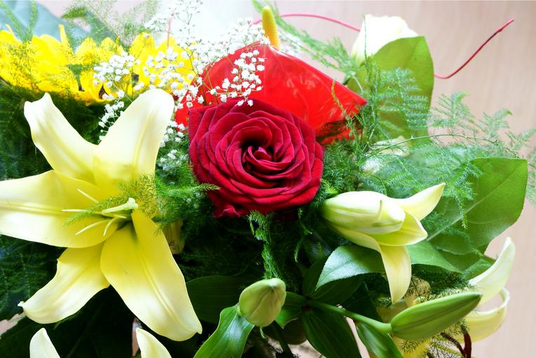 Keywords: flowers clear bouquet rose red yellow anthurium lily wishes wish love friendship