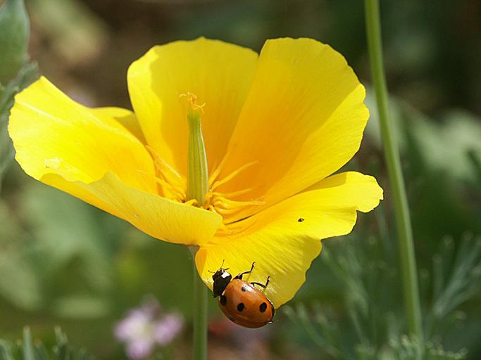 Keywords: flowers flower yellow plants nature ladybug insects macro