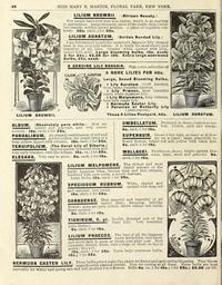 Keywords: Flowers for springtime (16501417811).jpg 46 <br> MISS MARY E MARTIN FLORAL PARK NEW YORK <br> LILIUM BROWNII <br> African Beauty <br> Few people have ever seen this variety which is so startling <br> in appearance Large trumpets snow white inside deep choco- <br> late outside reddish brown anthers A plant of exquisite con- <br> trasts 30c each; 2 for 50c <br> LILIUM AURflTUWI Golden Banded Lily <br> I am determined to sell this mammoth Japanese Lily cheaper <br> than it was ever sold before It is really the most showy and <br> beautiful of all lilies Creamy white spotted with pink <br> bound Avith gold Large blooming bulbs 10c each; <br> 3 for 25c; 25 00 for 100 Extra large enormous <br> Bulbs 25c each <br> A GENUSNE LILY BARGAIN <br> LIUUM <br> gAURATOM <br> This entire collection of <br> 5 RARE LILIES FOR 40c <br> Large Sound Blooming Bulbs <br> I Lily Auratum Gold Banded <br> from Japan Imperial Gardens <br> I Lily Praecox most beautiful <br> hardy white Japanese Lily <br> I Lily Melpomene deep crimson <br> best dark Japan Lily <br> f Bermuda Easter Lily <br> Peruvian or Butterfly <br> Lily <br> LILIUM BROWN39 <br> Alstrcemeria <br> These 5 Lilies Postpaid 40c <br> LILIUM AURATUM <br> ALBUM Absolutely pure white Most ex- <br> hbh quisite and graceful and very sweet- <br> scented 10c each; 3 for 25c <br> PARDALIN UM An elegant combination of red and <br> in Hi golden-yellow the petals being of a <br> deep yellow tipped with crimson 10c each; 3 for 25c <br> TENUIFOLIUM <br> The Coral Lily of Siberia <br> Intense scarlet beautiful form and <br> very early bloomer; fern-like foliage 15c ea ; 2 f or 2 5 c <br> ELEGAE1S Very easy to grow 6c each; 3 for 15c <br> LILIUM MELPOMENE <br> UMBELLATUM <br> I IWIII I I I I 1 <br> 6c each; 3 for J 5c <br> Produced in dense clusters or um- <br> bels Yellow pink and orange <br> hardy Japanese lilies intense deep and rich crimson <br> bordered with pure white a lovelv contrast <br> SUPERBUM Grows 6 feet high as many as 40 flo w- <br> - fc ยซ ยป ยป i mi ers on a plant ; large gracefully re- <br> flexed flowers bright red and yellow with black dots <br> 6c each; 3 for 15c <br> WALLACEI Floriferous showy bright apricot blos- <br> ยซ i -ii soms large erect and graceful 6c <br> each; 3 for 15c <br> The richest and most <br> highly colored of the <br> bordered with pure <br> Large Bulbs 12c each; 3 for 30c <br> SP ECIOSUM RUBRUM <br> ยซ 8miihi ' wiMMJiiimmiim <br> and carmine ; very sweet <br> 10c each; 3 for 25c <br> White shaded and <br> spotted with deep red <br> CANADENSE <br> Most graceful and beautiful of all <br> native lilies; drooping bell-like <br> flowers ; some are pure yellow others orange red inside <br> finely spotted <br> 6c each; 3 for i 5c <br> TifSBIMUSffl fl ol Double flowered sort of the <br> TaGKiwuwi ti pi T ger Lilj Yery beautiful; <br> quite distinct <br> 6c each; 3 for 15c <br> Ul ium PRAECOX The best of all the Japanese <br> LIUBH PKWE OUA hardy whiteliliegj yery bardy <br> and never fails to grow or bloom year after year Most <br> exquisite frosted white with a tinge of blush on tips of <br> petals ; fine sort <br> 12c each ; 3 for 30c Extra large enormous bulbs <br> S5c; 2for 25c <br> BrDuiina raCTE-D 1 II V These bulbs potted make fine plants for Easter and early spring blooming They bloom <br> PE KWIUUH S HSIS W jL n y magn ificently planted outside Fine for cutting at all times These bulbs are kept <br> especially for winter and spring sale and will produce 5 to 8 flowers Bulbs 8c ea ; 2 for 15c; 8 for 50c; 5 00 per 100 43810186 149144 77948 Page 46 Text http //www biodiversitylibrary org/page/43810186 1900 Henry G Gilbert Nursery and Seed Trade Catalog Collection ; Miss Mary E Martin Firm ; Miss Mary E Martin Firm NameFound Auratum NameFound BrDuiina NameFound Lilium NameConfirmed Lilium EOLID 11391140 NameBankID 2662405 NameFound Lilium auratum NameConfirmed Lilium auratum EOLID 1003309 NameBankID 5416786 NameFound Lilium brownii NameConfirmed Lilium brownii EOLID 1003312 NameBankID 5957774 NameFound Lilium melpomene NameConfirmed Lilium melpomene Kronfeldt EOLID 1291173 Biodiversity Heritage Library Flowers for springtime Garden Stories Catalogs Flowers Miss Mary E Martin Firm Nurseries Horticulture Seeds U S Department of Agriculture National Agricultural Library bhl page 43810186 dc identifier http //biodiversitylibrary org/page/43810186 bhlGardenStories Lilies BHLinbloom miss mary e martin firm nurseries horticulture u s department of agriculture national agricultural library bhlgardenstories bhlinbloom Information field Flickr posted date ISOdate 2015-02-11 CC-BY-2 0 BioDivLibrary https //flickr com/photos/61021753 N02/16501417811 2015-08-24 23 53 59 cc-by-2 0 PD-old-70-1923 Flowers for springtime Photos uploaded from Flickr by Fรฆ using a script |