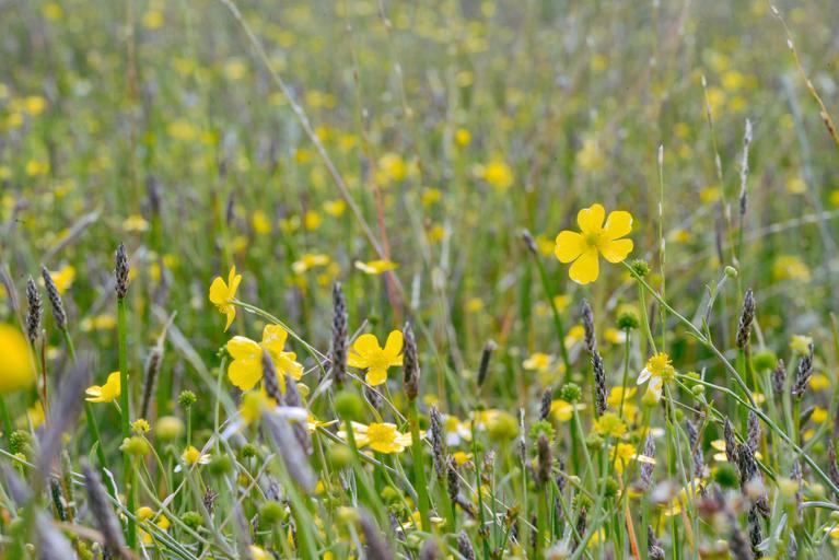 Keywords: flowers hayfield spring meadow green grass nature grassland floral yellow blossom colorful flora bloom