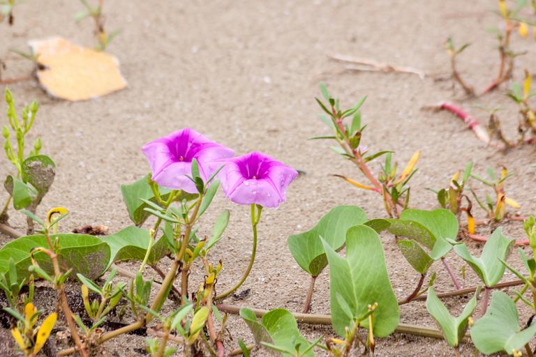 Keywords: flowers ipomoea flowers seaside autumn leaves in the sand