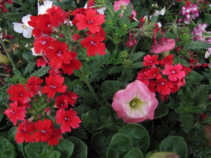 Keywords: flowers pink red white pattern flower outdoor plant flowerbed