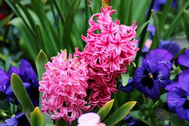 Keywords: flowers nature purple pink green environment city casting flower bed grass plant yellow close macro grasses spring purple flower
