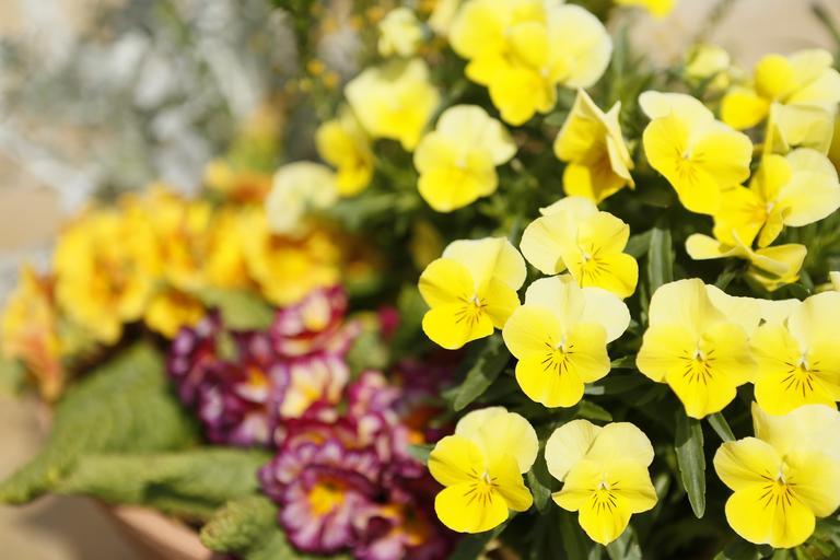 Keywords: flowers pansy flower garden yellow landscape views colorful hybrid plant