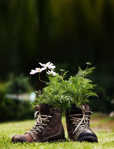 Keywords: flowers shoes meadow garden deco