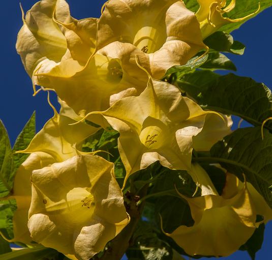 Keywords: flowers yellow angel's trumpet brugmansia blooms garden large flora toxic poisonous