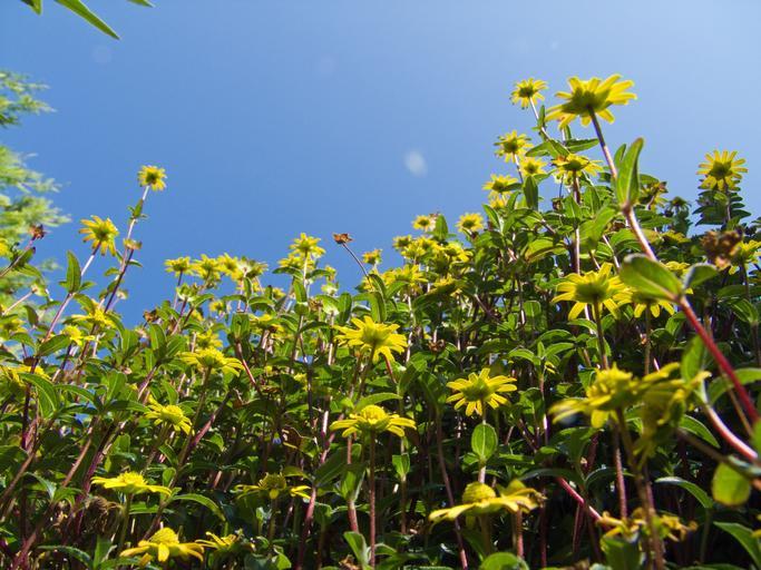 Keywords: flowers yellow hussar buttons sky nature