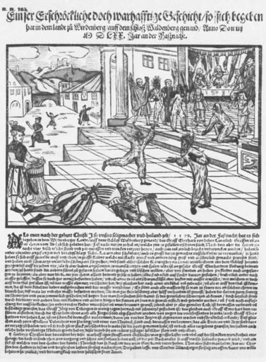 | Keywords: Flugblatt Brandunglück 1570.png Flugblatt Brandunglück während des Fastnachtsfestes bei Graf Eberhard von Hohenlohe auf Schloss Waldenburg Württemberg Papier Holzschnitt Typendruck Flyer Fire on Castle Waldenburg at a carneval party given by Graf Eberhard von Hohenlohe paper woodcut type printing Nürnberg Germanisches Nationalmuseum Grafische Sammlung Inv Nr HB 765 1570 unbekannt/unknown Public domain because its copyright has expired PD-old-100 Typography of the 1500s Wild man in art 16th-century woodcuts of people Württemberg Waldenburg Württemberg Hohenlohe Adelsgeschlecht |