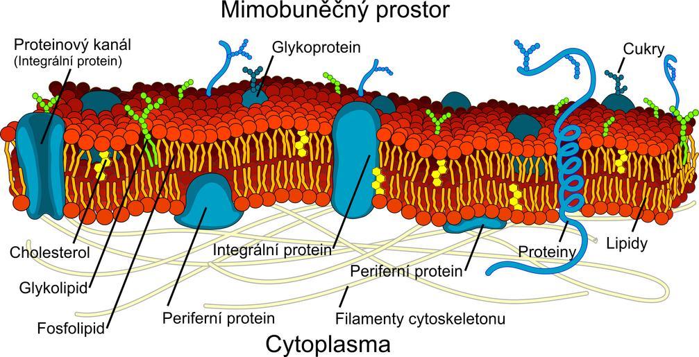 | Keywords: Fluidní mozaikový model buněčné membrány.tif cs Buněčná membrána se také označuje jako plasmatická membrána Podle fluidního mozaikového modelu publikovaného v roce 1972 Singerem a Nicolsonem se jedná o polopropustnou lipidovou dvouvrstvu s vnořenými proteiny a dále interagující s intracelulárním cytoskeletonem z jedné strany a případnou buněčnou stěnou nebo dalšími buňkami na straně druhé Složení se vyznačuje asymetrií mezi vnější a vnitřní stranou membrány en The cell membrane also called the plasma membrane or plasmalemma is a semipermeable lipid bilayer common to all living cells It contains a variety of biological molecules primarily proteins and lipids which are involved in a vast array of cellular processes It also serves as the attachment point for both the intracellular cytoskeleton and if present the cell wall 2015-09-07 own Karel Berka other versions cc-zero Uploaded with UploadWizard Cell membrane |