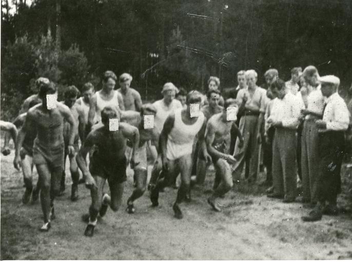 Keywords: outdoor Hos unge nordmenn i dekning. Tusener av unge nordmenn har på grunn av utviklingen i Norge måttet gå i dekning inne i de vidstrakte skogene. Enkelte steder har de vært samlet i store grupper. Guttene har vært sine egne kokker, og ellers forsøkt å få det best mulige ut av situasjonen. Idrettsøvelser har vært alminnelig ”tidsfordriv”. Bildet viser starten i et terrengløp som arrangertes et sted. Sth. 23.3.45. RA/PA-1209/Uc/68/2/S 3133 Hos unge nordmenn i dekning. Tusener av unge nordmenn har på grunn av utviklingen i Norge måttet gå i dekning inne i de vidstrakte skogene. Enkelte steder har de vært samlet i store grupper. Guttene har vært sine egne kokker, og ellers forsøkt å få det best mulige ut av situasjonen. Idrettsøvelser har vært alminnelig ”tidsfordriv”. Bildet viser starten i et terrengløp som arrangertes et sted. Sth. 23.3.45. RA/PA-1209/Uc/68/2/S 3133 |