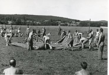 Keywords: outdoor blackandwhite black and white NORSK RESERVEPOLITI UTDANNES I SVERIGE En av de norske reservepolitiforlegninger i Sverige er forlegningen på Stråtenbro. Bildet viser mannskap tilhørende et sanitetskompani beskjeftiget med å reise et syketelt. Stockholm 10.11.44 RA/PA-1209/Uc/67/3/S 5300 NORSK RESERVEPOLITI UTDANNES I SVERIGE En av de norske reservepolitiforlegninger i Sverige er forlegningen på Stråtenbro. Bildet viser mannskap tilhørende et sanitetskompani beskjeftiget med å reise et syketelt. Stockholm 10.11.44 RA/PA-1209/Uc/67/3/S 5300 |