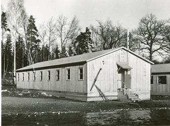 Keywords: outdoor NORDMENN I SVERIGE VENDER HJEM. I 1942 begynte Den norske regjering i samarbeide med svenske myndigheter utdannelsen av 8-9000 yngre norske flyktninger i Sverige til politiavdelinger. Disse politistyrkene er beregnet på å ta over polititjenesten og opprettholde ro og orden i de befridde områder av Norge. Under forhandlingene i Stockholm mellom den norske utenriksminister Trygve Lie og justisminister Terje Wold på den ene siden og Den svenske regjering på den annen, er det i disse dager oppnådd enighet bruken av disse politistyrkene. Ifølge overenskomsten vil et antall norske politifolk reise til Nord-Norge snarest mulig og tjenestegjøre i de områder som er og etter hvert vil bli befridd av russiske og norske tropper. Mälsåker slott ved Mälaren er en av de forlegninger i Sverige hvor norsk reservepoliti utdannes. Bildet viser en av mannskapsbrakkene som ligger helt nede ved stranden. RA/PA-1209/Uc/67/3/S 5049 NORDMENN I SVERIGE VENDER HJEM. I 1942 begynte Den norske regjering i samarbeide med svenske myndigheter utdannelsen av 8-9000 yngre norske flyktninger i Sverige til politiavdelinger. Disse politistyrkene er beregnet på å ta over polititjenesten og opprettholde ro og orden i de befridde områder av Norge. Under forhandlingene i Stockholm mellom den norske utenriksminister Trygve Lie og justisminister Terje Wold på den ene siden og Den svenske regjering på den annen, er det i disse dager oppnådd enighet bruken av disse politistyrkene. Ifølge overenskomsten vil et antall norske politifolk reise til Nord-Norge snarest mulig og tjenestegjøre i de områder som er og etter hvert vil bli befridd av russiske og norske tropper. Mälsåker slott ved Mälaren er en av de forlegninger i Sverige hvor norsk reservepoliti utdannes. Bildet viser en av mannskapsbrakkene som ligger helt nede ved stranden. RA/PA-1209/Uc/67/3/S 5049 |