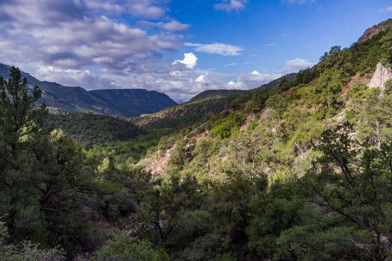 Keywords: arizona coconino national forest coconinonationalforest flume trail flumetrail forest service forestservice fossil creek fossilcreek fossil springs fossilsprings fossil springs wilderness fossilspringswilderness national forest nationalforest pentax k-1 pentaxk1 red rock ranger district redrockrangerdistrict tonto national forest tontonationalforest usfs canyon desert forest hiking outdoors riparian summer wilderness strawberry outdoor hill landscape mountainside foothill ridge mountain mountain ridge cliff crag The Flume Trail starts at the old Irving Power Plant location and follows the line of the now-removed flume that carried the water from the dam to the power plants for generating electricity. The trail ends at the old Fossil Creek Dam, a four and a half mile trek one way. The trail ascends steadily about 500 feet from an elevation of 3769 foot at the trailhead over the first mile. For the next three and a half miles, the trail rolls gently several times in approximately 150 foot elevation changes before arriving at the dam. The trail is approximately 500 feet up the side of the canyon, offering fantastic views of the canyon and creek below. There is no creek access between the trailhead and the dam. The trail is very exposed and extremely hot in the warmer months. Hikers should carry at least four quarts of water. The trail is in the Fossil Creek Wilderness. Bikes and mechanized vehicles are prohibited. Flume Trail ends at the old Fossil Creek Dam, where the trail joins with Fossil Springs Trail. Camping is prohibited along Flume Trail, from the Fossil Creek Dam for several miles downstream (west) along the canyon to the bridge. Flume Trail meets Fossil Springs Trail at the old dam. Continue another half mile on Fossil Springs Trail through a narrow section of the canyon to find easy camping near the creek in the springs area. Camping is permitted during the fall-winter season 100 feet or more from the creek. A half a mile from the dam is a marked side trail leading to the first spring source, where many hikers refill their water bottles. Fossil Creek is one of two Wild and Scenic rivers in Arizona. A series of springs gush 20,000 gallons a minute year-round at the bottom of a 1,600 foot deep canyon, creating a lush riparian oasis rich with life. Over the years these calcium laden waters have laid down huge deposits of a type of limestone called travertine, creating deep pools for miles along the creek. The Wilderness and surrounding area are on the Tonto and Coconino National Forests, and are managed by the Coconino National Forest. During the spring-summer season, camping is prohibited anywhere in the Wilderness and surrounding area, and a reserved parking permit is required to park at the Flume trailhead at the Irving parking lot. See Flume Trail and Fossil Creek on the USFS Coconino National Forest website for maps, regulations, permit reservations, and other details. Photo by Deborah Lee Soltesz, August 10, 2016. Source: USFS Coconino National Forest. The Flume Trail starts at the old Irving Power Plant location and follows the line of the now-removed flume that carried the water from the dam to the power plants for generating electricity. The trail ends at the old Fossil Creek Dam, a four and a half mile trek one way. The trail ascends steadily about 500 feet from an elevation of 3769 foot at the trailhead over the first mile. For the next three and a half miles, the trail rolls gently several times in approximately 150 foot elevation changes before arriving at the dam. The trail is approximately 500 feet up the side of the canyon, offering fantastic views of the canyon and creek below. There is no creek access between the trailhead and the dam. The trail is very exposed and extremely hot in the warmer months. Hikers should carry at least four quarts of water. The trail is in the Fossil Creek Wilderness. Bikes and mechanized vehicles are prohibited. Flume Trail ends at the old Fossil Creek Dam, where the trail joins with Fossil Springs Trail. Camping is prohibited along Flume Trail, from the Fossil Creek Dam for several miles downstream (west) along the canyon to the bridge. Flume Trail meets Fossil Springs Trail at the old dam. Continue another half mile on Fossil Springs Trail through a narrow section of the canyon to find easy camping near the creek in the springs area. Camping is permitted during the fall-winter season 100 feet or more from the creek. A half a mile from the dam is a marked side trail leading to the first spring source, where many hikers refill their water bottles. Fossil Creek is one of two Wild and Scenic rivers in Arizona. A series of springs gush 20,000 gallons a minute year-round at the bottom of a 1,600 foot deep canyon, creating a lush riparian oasis rich with life. Over the years these calcium laden waters have laid down huge deposits of a type of limestone called travertine, creating deep pools for miles along the creek. The Wilderness and surrounding area are on the Tonto and Coconino National Forests, and are managed by the Coconino National Forest. During the spring-summer season, camping is prohibited anywhere in the Wilderness and surrounding area, and a reserved parking permit is required to park at the Flume trailhead at the Irving parking lot. See Flume Trail and Fossil Creek on the USFS Coconino National Forest website for maps, regulations, permit reservations, and other details. Photo by Deborah Lee Soltesz, August 10, 2016. Source: USFS Coconino National Forest. |