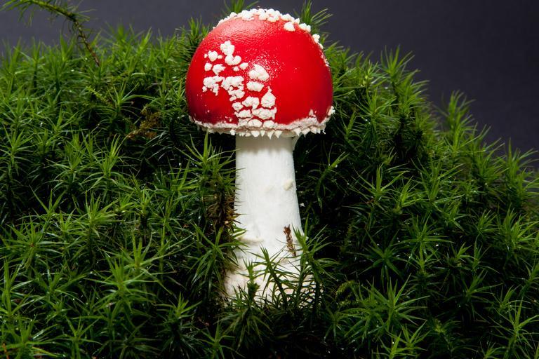 Keywords: fly agaric amanita muscaria mushroom hat red signal red flake white autumn nature forest moss green forest floor toxic