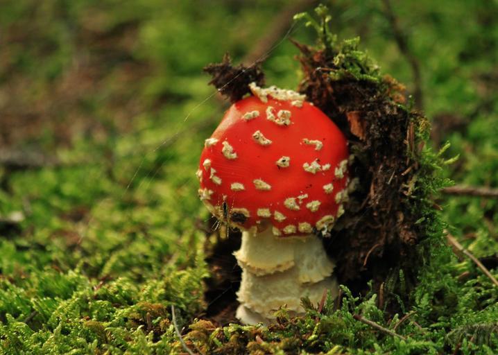 Keywords: fly agaric mushroom mushrooms nature forest autumn gift toxic red point spotted moss red fly agaric mushroom growth upstart close spider