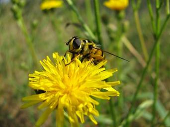 Keywords: fly bee insect flowers dandelion summer meadow colors yellow macro