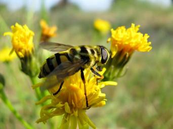 Keywords: fly bee insect flowers dandelion summer meadow colors yellow macro