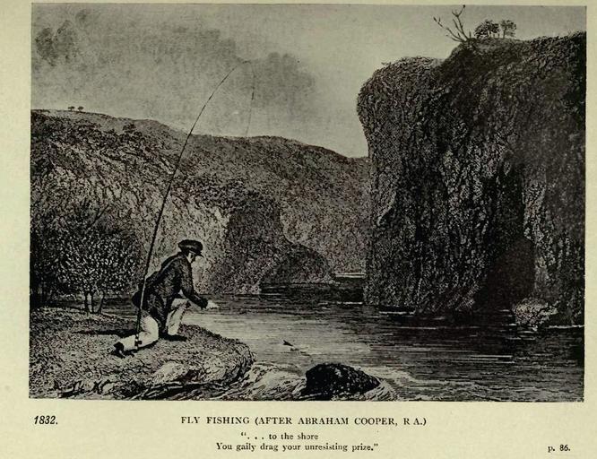 Keywords: FlyFishingCirca1832.JPG Fly Fishing circa 1832 from Fishing and Shooting-Buxton 1902 Extracted from PDF version of above work on the Internet Archive 2008-03 Mike Cline PD-old Fly fishing in art