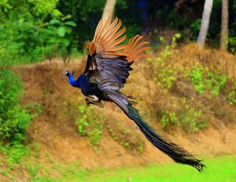Keywords: Flying Beauty Peacock.JPG In a morning I hear the voice of peacock from my Home then i take my camera and went to saw peacock then i find a peacock on a palm tree it doesn't have any feather But it is also beautiful so i click some snaps At that time i hear some leaf sound when i turned OMG I am just woww to saw the beautiful bird ran in front of my eye its feather gently wave in the floor then i turned my camera to his beauty and got my dream Click own 10th june 2015 Soumya B Own Work Birds in flight Pavo cristatus |