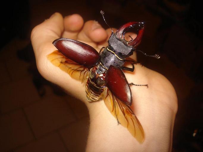 Keywords: Flying Lucanus cervus.JPG en A 55mm long male of Lucanus cervus own Bugman95 Lucanus cervus
