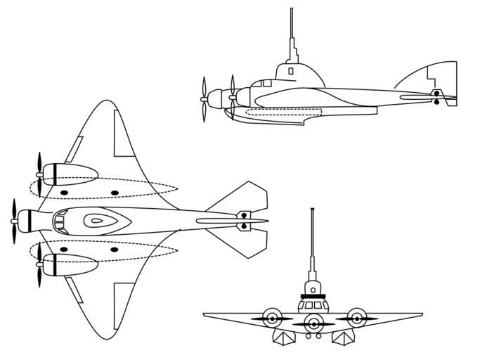 Keywords: Flying submarine Russia.svg Flying submarine Fliegendes U-Boot Летающая подводная лодка Own 2008-04 Werneuchen Line drawings of aircraft SVG aircraft 3-views Ushakov Flying Submarine
