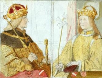 Keywords: Fmbc25350 02a.jpg Kaiser Friedrich III und seine Frau Eleonore von Portugal Zeichnung aus dem Skizzenbuch Eduar Julius Freidrich Bendemanns um 1850 Frederick III Holy Roman Emperor Eleanor of Portugal 1434-1467 in paintings PD-old bendemann family |