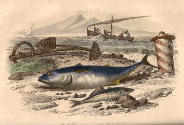 Keywords: FMIB 32830 Le Thon, Le Maquereau.jpeg check categories 15 September 2015 3 Le Thon Le Maquereau Subject Tuna Mackerel Tag Fish 1839 Cite book Histoire Naturelle de La Cepede M le comte de Bernard Germain Etienne de La Ville sur Illon 1756-1825 Nouvelle Edition La Cepede M le comte de Bernard Germain Etienne de La Ville sur Illon Paris Furne et Ce Libraires-Editeurs 1839 Facing Page 133 vol 2 Creator Bernard Germain de Lacépède PD-UWASH-FMIB Institution University of Washington FMIB-source accession number 32830 Images from the Freshwater and Marine Image Bank to check Histoire naturelle de Lacépède Thunnus thynnus Scombridae |