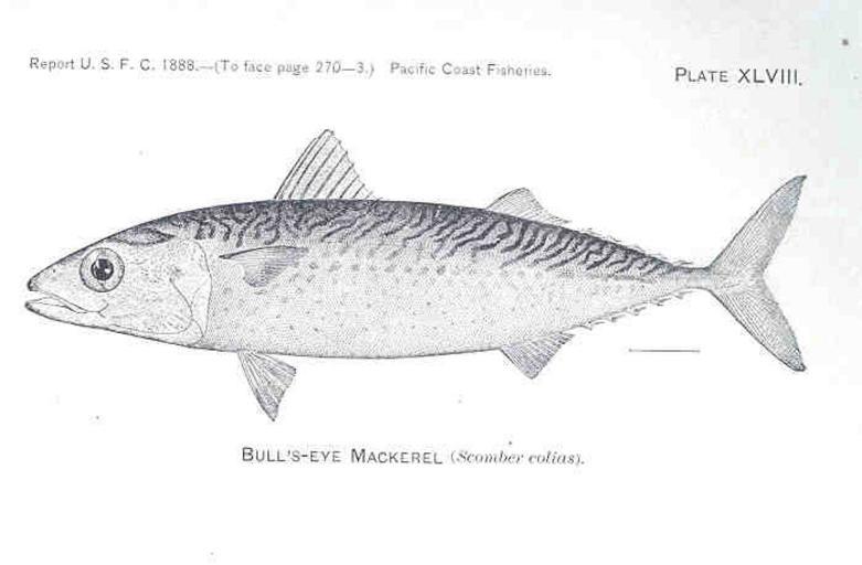 Keywords: FMIB 33422 Bull's-Eye Mackerel.jpeg Bull's-Eye Mackerel Scomber colias Subject Scomberomorus Mackerels Tag Fish 1888/1889 Cite book Report on the Fisheries of the Pacific Coast of the United States Collins J W Washington DC Government Printing Office 1892 Report of the Commissioner United States Commission of Fish and Fisheries 1888/1889 Plate XLVIIIa Creator Joseph William Collins PD-UWASH-FMIB Institution University of Washington FMIB-source accession number 33422 Drawings of fish by Joseph William Collins Scomber colias |