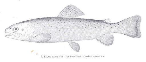 Keywords: FMIB 34334 Salmo fario will Von Behr Trout.jpeg check categories 15 August 2015 3 Salmo fario will Von Behr Trout One-half natural size Subject Salmo Brown trout Trypanosoma Tag Fish 1891 Cite book Reconnaissance of the streams and lakes of western Montana and northwestern Wyoming Evermann Barton W Washington DC Government Printing Office 1893 Bulletin of the United States Fish Commission vol 11 1891 Plate XXIII-3 Creator Barton Warren Evermann PD-UWASH-FMIB Institution University of Washington FMIB-source accession number 34334 Images from the Freshwater and Marine Image Bank to check Barton Warren Evermann Salmo trutta Trypanosoma |