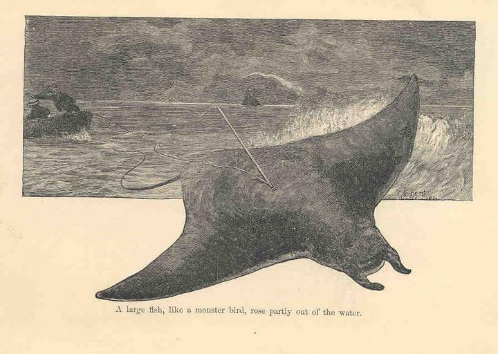Keywords: FMIB 35311 Large fish, like a monster bird, rose partly out of the water.jpeg Large fish like a monster bird rose partly out of the water Subject Rays Fishes Tag Fish 1892 Cite book Along the Florida Reef Holder Charles Frederick New York City NY D Appleton and Company 1892 Facing title page Creator Charles Frederick Holder PD-UWASH-FMIB Institution University of Washington FMIB-source accession number 35311 Images from the Freshwater and Marine Image Bank to check Charles Frederick Holder Manta genus |
