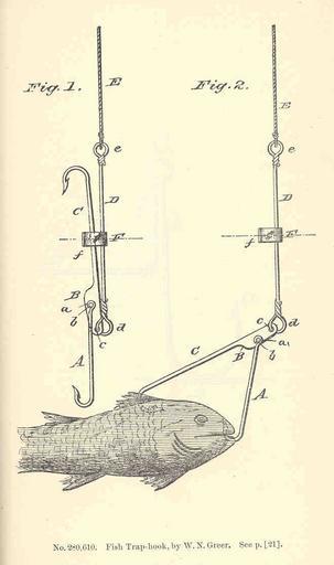 | Keywords: FMIB 35556 Fish Trap-Hook, by W N Greer, no280610.jpeg check categories 18 September 2015 3 Fish Trap-Hook by W N Greer no 280610 Subject Fisheries--Patents Fishing--Patents Fishing--Equipment and supplies Tag Fisheries Techniques 1887 Cite book Patents Issued by the United States During the Years 1882 1883 and 1884 Relating to Fish and the Methods Products and Applications of the Fisheries Report of the Commissioner for 1885 United States Commission of Fish and Fisheries Cyrenforth Robert G Washington DC Government Printing Office 1887 Plate XXIII Robert G Cyrenforth PD-UWASH-FMIB Institution University of Washington FMIB-source accession number 35556 Images from the Freshwater and Marine Image Bank to check Robert G Cyrenforth Fisheries Fishing equipment |