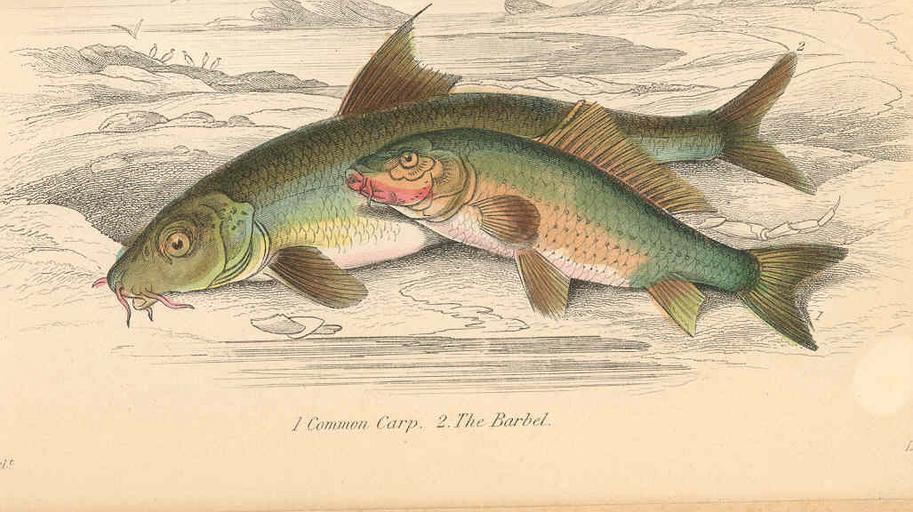 Keywords: FMIB 36432 Common Carp (1); Barbel (2).jpeg check categories 26 August 2015 3 Common Carp 1 ; Barbel 2 Subject Carp Barbel Fish Tag Fish 1866 Cite book British Fishes Part I Hamilton Robert London England Chatto and Windus 1866 Naturalist's Library vol 36 Facing page 314 Creator Robert Hamilton PD-UWASH-FMIB Institution University of Washington FMIB-source accession number 36432 Images from the Freshwater and Marine Image Bank to check Robert Hamilton Cyprinus carpio Unidentified Siluriformes |