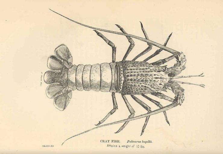 | Keywords: FMIB 36619 Cray Fish Palinurus hugellii.jpeg Cray Fish Palinurus hugellii Attains a weight of 10 lbs Subject Crayfish Tag Shellfish 1893 Cite book History of the Fisheries of New South Wales with a Sketch of the Laws by Which They Have Been Regulated Thompson Lindsay G Sydney NSW Australia Charles Potter Government Printer 1893 Facing page 73 Lindsay G Thompson PD-UWASH-FMIB Institution University of Washington FMIB-source accession number 36619 Images from the Freshwater and Marine Image Bank to check Lindsay G Thompson Sagmariasus verreauxi |