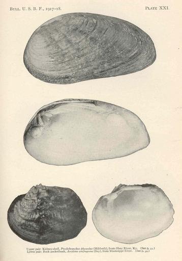 | Keywords: FMIB 38271 Kidney-shell, Ptychobranchus phaseolus (Hildreth), from Obey River, Ky, upper pair; Rock pocketbook, Arcidens confragosus (Say.jpeg check categories 26 August 2015 4 Kidney-shell Ptychobranchus phaseolus Hildreth from Obey River Ky upper pair; Rock pocketbook Arcidens confragosus Say from Mississippi River lower pair Subject Ptychobranchus Arcidens Freshwater mussels Tag Shellfish 1921 Cite book Fresh-water Mussels and Mussel Industries of the United States Coker Robert E Washington DC Government Printing Office 1921 Bulletin of the United States Bureau of Fisheries vol 36 1917-1918 Plate XXI Creator Robert Ervin Coker PD-UWASH-FMIB Institution University of Washington FMIB-source accession number 38271 Images from the Freshwater and Marine Image Bank to check Robert Ervin Coker Ptychobranchus Arcidens Shellfish |