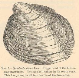 Keywords: FMIB 38877 Quadrula ebena Lea Niggerhead of the button manufacturers Young shell taken in its tenth year This has young in all four leaves.jpeg Quadrula ebena Lea Niggerhead of the button manufacturers Young shell taken in its tenth year This has young in all four leaves of the branchiae Subject Freshwater mussels Quadrula Tag Shellfish 1899 Cite book Pearly Fresh-Water Mussels of the United States Their Habits Enemies and Diseases with Suggestions for Their Protection Simpson Charles T Washington DC Government Printing Office 1899 Bulletin of the United States Fish Commission vol 18 1898 283 Creator Charles Torrey Simpson PD-UWASH-FMIB Institution University of Washington FMIB-source accession number 38877 Images from the Freshwater and Marine Image Bank to check Charles Torrey Simpson Quadrula ebenus Shellfish |