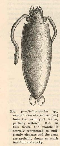 Keywords: FMIB 39109 Helicocranchia sp, ventral view of specimen from the vicinity of Kauai, partially restored In this figure the mantle is scarcely.jpeg Helicocranchia sp ventral view of specimen from the vicinity of Kauai partially restored In this figure the mantle is scarcely represented as sufficiently elongate and the arms are probably shown as much too short and stocky Subject Cephalopoda Helicocranchia Tag Fish 1914 Cite book Cephalopoda of the Hawaiian Islands Berry S Stillman Washington DC Government P rinting Office 1914 Bulletin of the United States Bureau of Fisheries vol 32 1912 Fig 40 Creator Samuel Stillman Berry PD-UWASH-FMIB Institution University of Washington FMIB-source accession number 39109 Images from the Freshwater and Marine Image Bank to check Samuel Stillman Berry Helicocranchia |