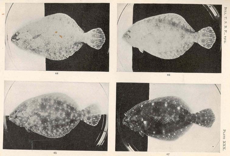 Keywords: FMIB 40278 44-Paralichthys abliguttus, (G), 22 cm long, head continuously on white and tail on back This specimen was taken from a black.jpeg 44-Paralichthys abliguttus G 22 cm long head continuously on white and tail on back This specimen was taken from a black aquarium and was fully adapted to black in the beginning of the experiment 45- Individual G one eye on white the other on black continuously 46- Individual G continuously with head on white body on black 47- Individual G head on black body on white Subject Gulf flounder--Adaptation Gulf flounder--Behavior Tag Fish 1916 Cite book Changes in Shade Color and Pattern in Fishes and their Bearing on the Problems of Adaptation and Behavior with Especial Reference to the Flounders Paralichthys and Ancylopsetts Bulletin of the United States Bureau of Fisheries vol 34 1914 Mast S O Washington DC Government Printing Office 1916 Plate XXX S O Mast PD-UWASH-FMIB Institution University of Washington FMIB-source accession number 40278 Images from the Freshwater and Marine Image Bank to check S O Mast Paralichthys albigutta |