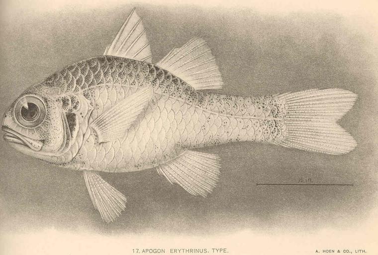 Keywords: FMIB 41085 Apogon erythrinus Type.jpeg Apogon erythrinus Type Subject Apogon Tag Fish 1904 Cite book Catalogue of the Shore Fishes Collected by the Steamer Albatross About the Hawaiian Islands in 1902 Snyder John Otterbein Washington DC Government Printing Office 1904 Bulletin of the United States Fish Commission vol 22 1902 Plate 9-17 Creator John Otterbein Snyder PD-UWASH-FMIB Institution University of Washington FMIB-source accession number 41085 Images from the Freshwater and Marine Image Bank to check John Otterbein Snyder Apogon erythrinus |