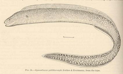 Keywords: FMIB 42391 Gymnothorax goldsboroughi Jordan & Evermann; from the type.jpeg Gymnothorax goldsboroughi Jordan Evermann; from the type Subject Morays Gymnothorax Tag Fish 1905 Cite book Shore Fishes of the Hawaiian Islands With a General Account of the Fish Fauna Jordan David Starr; Evermann Barton Warren Washington DC Government Printing Office 1905 Bulletin of the United States Fish Commission vol 23 for 1903 part I Fig 26 Creator David Starr Jordan Creator Barton Warren Evermann PD-UWASH-FMIB Institution University of Washington FMIB-source accession number 42391 Images from the Freshwater and Marine Image Bank to check David Starr Jordan Barton Warren Evermann Gymnothorax elegans |
