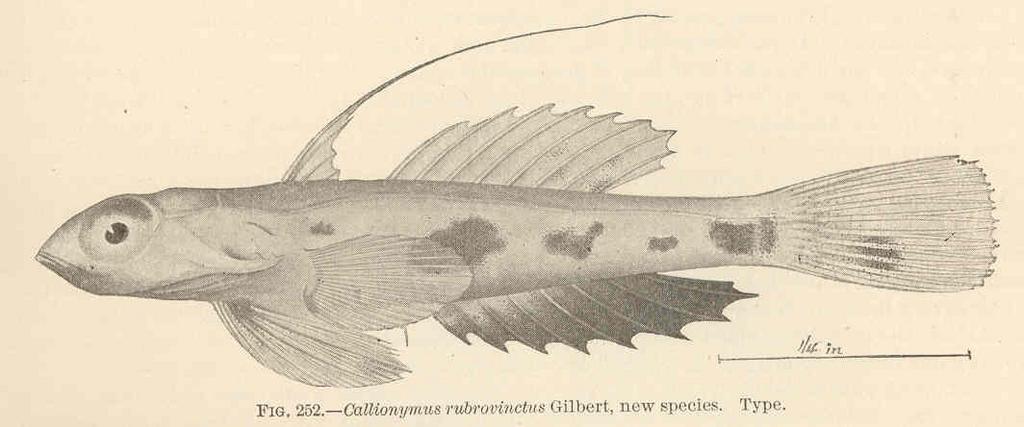 Keywords: FMIB 42722 Callionymus rubrovinctus Gilbert, new species Type.jpeg Callionymus rubrovinctus Gilbert new species Type Subject Dragonets Callionymus Tag Fish 1905 Cite book Deep Sea Fishes Aquatic Resources of the Hawaiian Islands Gilbert Charles Henry Washington DC Government Printing Office 1905 Bulletin of the United States Fish Commission vol 23 for 1903 part 2 Fig 252 Creator Charles Henry Gilbert PD-UWASH-FMIB Institution University of Washington FMIB-source accession number 42722 Images from the Freshwater and Marine Image Bank to check Charles Henry Gilbert Synchiropus rubrovinctus |