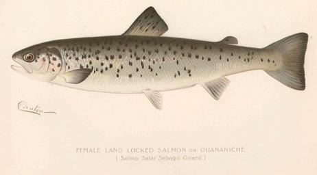 | Keywords: FMIB 43058 Female Land Locked Salmon or Quananiche (Salmo salar sebago Girard).jpeg check categories 17 September 2015 2 Female Land Locked Salmon or Quananiche Salmo salar sebago Girard Subject Atlantic salmon Tag Fish 1897 Cite book Second Annual Report of the Commissioners of Fisheries Game and Forests of the State of New York 1896 New York State Commissioners of Fisheries Game and Forests New York City NY Wynkoop Hallenbeck Crawford Co Printers 1897 Facing page 232 State of New York Forest Fish and Game Commission PD-UWASH-FMIB Institution University of Washington FMIB-source accession number 43058 Images from the Freshwater and Marine Image Bank to check Annual reports of the Commissioners of Fisheries Game and Forests of the State of New York Salmo salar |
