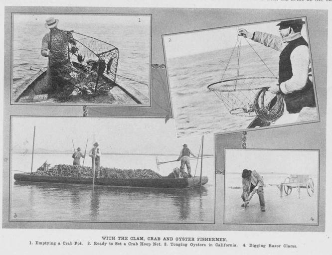 | Keywords: FMIB 44865 With the Clam, Crab and Oyster Fishermen.jpeg check categories 22 August 2015 2 With the Clam Crab and Oyster Fishermen 1 Emptying a crab pot 2 Ready to set a crab hoop net 3 Tonging Oysters in California 4 Digging razor clams Subject Crab fisheries Clam fisheries Oyster fisheries Tag Shellfish Fisheries Techniques 1916 Cite book With the Clam Crab and Oyster Fishermen 1 Emptying a crab pot 2 Ready to set a crab hoop net 3 Tonging Oysters in California 4 Digging razor clams Seattle WA 1916 Pacific Fisherman Year Book 1916 30 author PD-UWASH-FMIB Institution University of Washington FMIB-source accession number 44865 Images from the Freshwater and Marine Image Bank to check Oyster culture Fisheries |