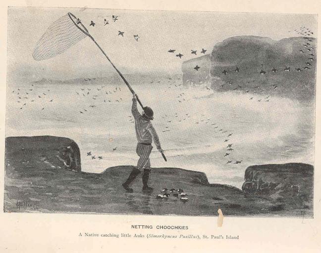 Keywords: FMIB 45358 Netting Choochkies.jpeg Netting Choochkies A Native catching little Auks Simorhymeus Pusillus St Paul's Island Subject Auks Hunting--Alaska Traditional fishing--Alaska Tag Polar 1897 Cite book Our Arctic Province Alaska and the Seal Islands Elliott Henry W New York City NY Charles Scribner's Sons 1897 Library of Contemporary Exploration and Adventure Facing page 209 Creator Henry Wood Elliott PD-UWASH-FMIB Institution University of Washington FMIB-source accession number 45358 Images from the Freshwater and Marine Image Bank to check Henry W Elliott Auks in art Hunting in the United States |