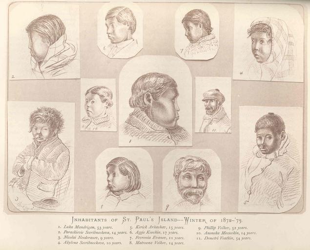 Keywords: FMIB 47590 Inhabitants of St Paul's Island--Winter of 1872-'73 -.jpeg check categories 21 August 2015 2 Inhabitants of St Paul's Island--Winter of 1872-'73 1 Luka Mandrigan 53 years 2 Paraskievie Seeribneekova 14 years 3 Nicolai Neederazov 9 years 4 Akylena Seeribneekova 10 years 5 Kerick Arbashav 15 years 6 Aggie Kooshin 17 years 7 Fevronia Evanov 11 years 8 Matroona Volkov 14 years 9 Phillip Volkov 52 years 10 Anoneka Meeseekin 14 years 11 Demetri Veatkin 54 years Subject Indians of North America--Alaska Indians of North America--Saint Paul Island Alaska Tag People 1873 00 Cite book Report on the Prybilov Group or Seal Islands of Alaska Elliott Henry W Washington DC Government Printing Office 1873 no pagination in volume Creator Henry Wood Elliott PD-UWASH-FMIB Institution University of Washington FMIB-source accession number 47590 Images from the Freshwater and Marine Image Bank to check Henry W Elliott Saint Paul Island Alaska |