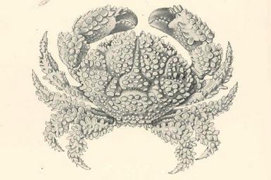 Keywords: FMIB 47664 Naturally-Protected Coral Crab.jpeg Naturally-Protected Coral Crab Actaea flosculata A small Cyclometope crab found in coral shingle off Ceylon as well as off the Maldives The whole of its upper surface is closely covered with knobs and petal-like spines which make it in its native habitation and in its natural attitude it is here represented conventionally a very inconspicuous object Subject Crabs Actaea Tag Shellfish 1902 00 Cite book Naturalist in Indian Seas or Four Years with the Royal Indian Marine Survey Ship 'Investigator' Alcock Alfred W New York City NY E P Dutton Co 1902 Fig 8 Creator Alfred William Alcock PD-UWASH-FMIB Institution University of Washington FMIB-source accession number 47664 Images from the Freshwater and Marine Image Bank to check Alfred William Alcock Actaea flosculata |