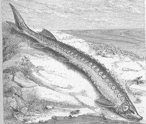 Keywords: FMIB 50431 Common Sturgeon (Acipenser sturio).jpeg Common Sturgeon Acipenser sturio Subject Sturgeons Acipenser Tag Fish 1868 Cite book Ocean World Being a Descriptive History of the Sea and its Living Inhabitants Fibuier Louis New York D Appleton Co 1868 Fig 355 Creator Charles Bevalet PD-UWASH-FMIB Institution University of Washington FMIB-source accession number 50431 Images from the Freshwater and Marine Image Bank to check Charles Bevalet Acipenser sturio |