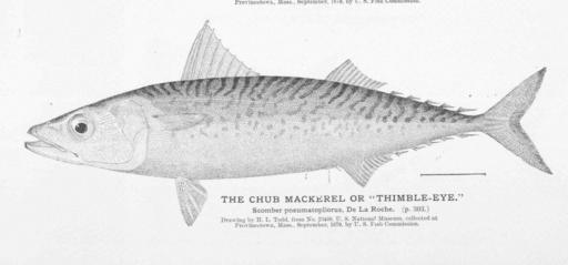 Keywords: FMIB 50944 Chub Mackerel, or "Thimble-Eye".jpeg check categories 7 September 2015 2 Chub Mackerel or Thimble-Eye Scomber pneulatopliorus De La Roche Subject Chub mackerel Tag Fish 1884 Cite book Fisheries and Fishery Industries of the United States Section I Natural History of Useful Aquatic Animals Plates Goode George Brown Washington DC Government Printing Office 1884 Plate 91 Creator H L Todd PD-UWASH-FMIB Institution University of Washington FMIB-source accession number 50944 Images from the Freshwater and Marine Image Bank to check H L Todd Scomber japonicus |