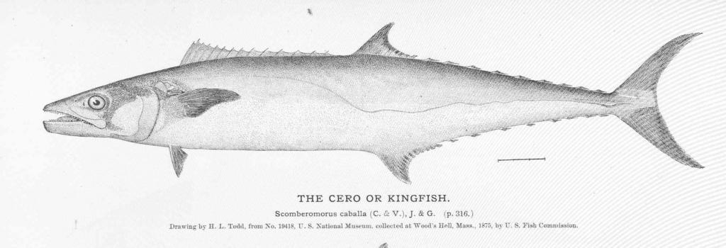 Keywords: FMIB 50948 Cero or Kingfish.jpeg check categories 7 September 2015 2 Cero or Kingfish Somberomorus caballa C V J G Subject King mackerel Scomberomorus Tag Fish 1884 Cite book Fisheries and Fishery Industries of the United States Section I Natural History of Useful Aquatic Animals Plates Goode George Brown Washington DC Government Printing Office 1884 Plate 94 Creator H L Todd PD-UWASH-FMIB Institution University of Washington FMIB-source accession number 50948 Images from the Freshwater and Marine Image Bank to check H L Todd Scomberomorus cavalla |