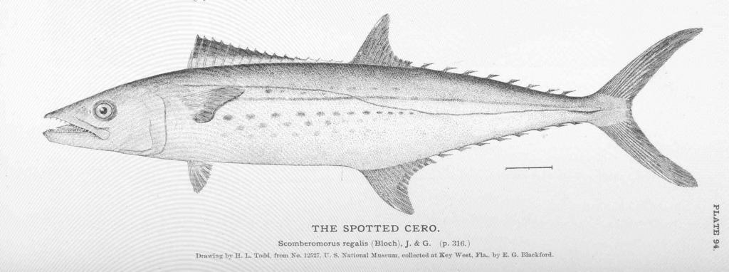 Keywords: FMIB 50949 Spotted Cero.jpeg Spotted Cero Subject Scomberomorus Tag Fish 1884 Cite book Fisheries and Fishery Industries of the United States Section I Natural History of Useful Aquatic Animals Plates Goode George Brown Washington DC Government Printing Office 1884 Plate 94 Creator H L Todd PD-UWASH-FMIB Institution University of Washington FMIB-source accession number 50949 Images from the Freshwater and Marine Image Bank to check H L Todd Scomberomorus regalis |