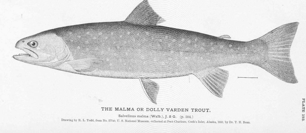 Keywords: FMIB 51079 Malma or Dolly Varden Trout.jpeg Malma or Dolly Varden Trout Salvelinus malma Walb J G Subject Dolly Varden Fish Tag Fish 1884 Cite book Fisheries and Fishery Industries of the United States Section I Natural History of Useful Aquatic Animals Plates Goode George Brown Washington DC Government Printing Office 1884 Plate 193 Creator George Brown Goode PD-UWASH-FMIB Institution University of Washington FMIB-source accession number 51079 Images from the Freshwater and Marine Image Bank to check The Fisheries and Fishery Industries of the United States Salvelinus malma |